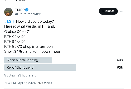 Currently bears are in full control of the tape below 5060 short term and 5200 long term. We have extracted most points from this trend down while staying nimble to extract 20 points rally as well. In FT land we never make any assumptions about any one, we flip and go with flow and never fight trend or chop.