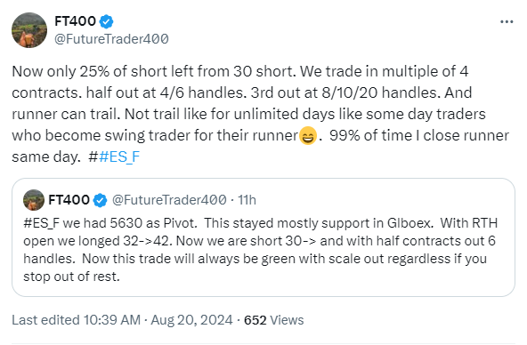 All eyes are going to be on Jackson Hole, Wyoming this week as Powell surveys economy, inflation and lays out road map for interest rates. For day trading though you want to just trade what you see and not second guess the market.