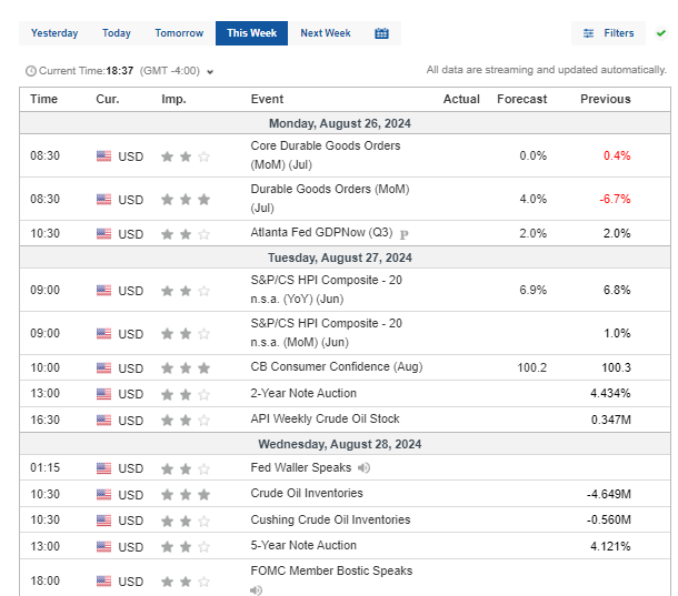 Last week saw ES futs trade in 100 point range, closing up by about 65 points. With Jackson Hole now behind us we shall see where market goes this week with NVDA earnings after market close on Wednesday.