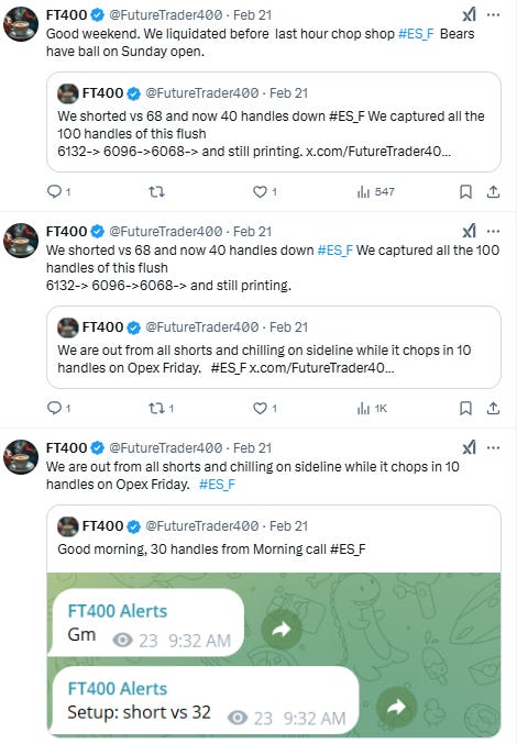 Hope you all had a great weekend. Friday we captured almost all of the sell off as posted on X. This week market leader NVDA reports on Wednesday so all eyes will be there. I will be out on Tuesday.