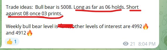 Sub stack subscription does not include real time telegram alerts it only includes this nightly news letter with levels and possible setups. For real time alerts please go to https://futuretrader400.substack.com/about