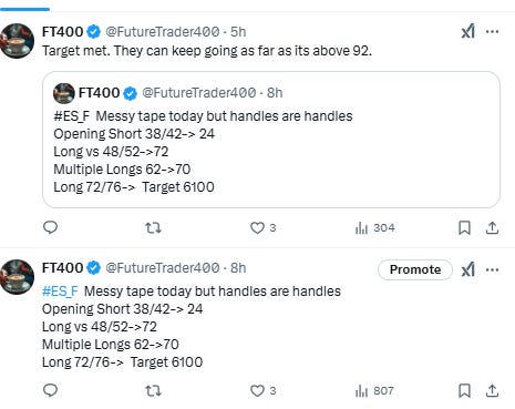 Sub stack subscription does not include real time telegram alerts it only includes this nightly news letter with levels and possible setups. For real time alerts please go to https://futuretrader400.substack.com/about
