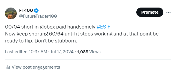 Sub stack subscription does not include real time telegram alerts it only includes this nightly news letter with levels and possible setups. For real time alerts please go to https://futuretrader400.substack.com/about