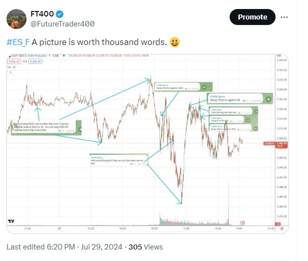 FT difference: I always tell traders in my Telegram that its very important to understand that most folks out there just provides levels and then brag about how their levels worked. What we do is provide setups that may or may not be the levels. Setups provides marker for entry with higher odds of making 10 to 20 next points. This is big differentiator vs other services out there that just boasts their levels after the fact. All levels are some kind of confluence and most of them will match with others and that is important but that’s just half ass job. Execution points or setups are more important then that. Hope it makes sense.