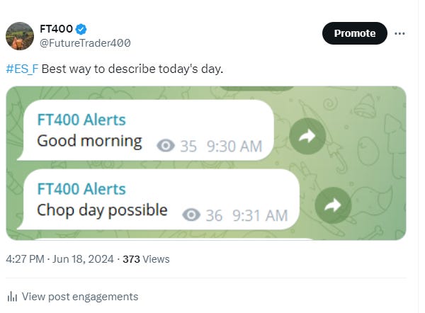 Sub stack subscription does not include real time telegram alerts it only includes this nightly news letter with levels and possible setups. For real time alerts please go to https://futuretrader400.substack.com/about