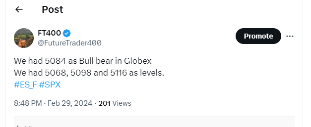 Recap today: We had trend day expected today with really good bull bear, though we did not pursue some trades as aggressively as I would have liked, specifically long after PCE from 76/80 area. We made decent handles though and we had great setups that worked most of the time. Our levels worked perfectly as mentioned in the below X post. Globex gave 84 to 60, PCE gave 84 to > 5100, RTH open gave 98 Short to 70. We longed in last two hours from 90 to 5115.