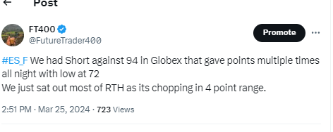 Recap We sat out most of RTH but had short bias against 86 all afternoon. Which is where we are trading right now. As I have said many many times, no one and no one can move tape. This was literally true today.😂. Don’t give out too much commission to broker if market is not moving, better to stay on sideline and avoid chop shop. If you can scalp 4 points do it but play with house’s money.