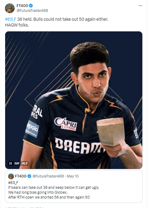 Traders, Hope you had a wonderful Mother’s day weekend. Market kept pushing higher since FOMC. Last week saw it go 100+ handles higher than open, a pretty good range. With inflation concerns coupled with Powell on tape after PPI on Tuesday and Kashkari after CPI on Wednesday, its going to be very interesting week.