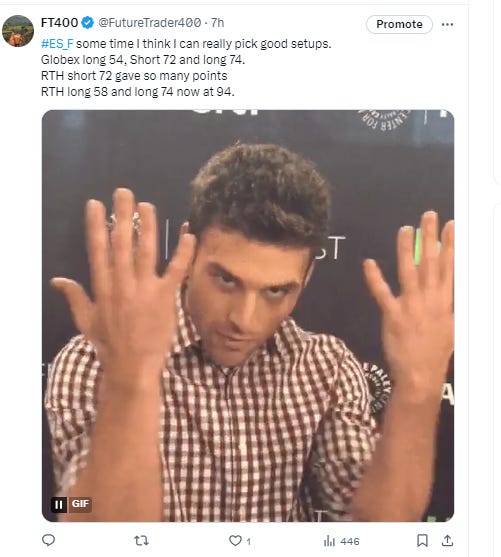 Sub stack subscription does not include real time telegram alerts it only includes this nightly news letter with levels and possible setups. For real time alerts please go to https://futuretrader400.substack.com/about