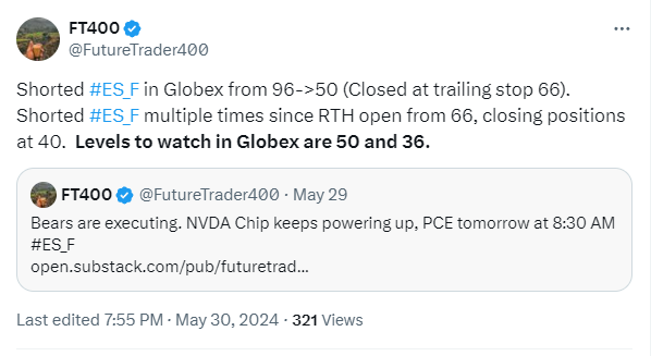Sub stack subscription does not include real time telegram alerts it only includes this nightly news letter with levels and possible setups. For real time alerts please go to https://futuretrader400.substack.com/about