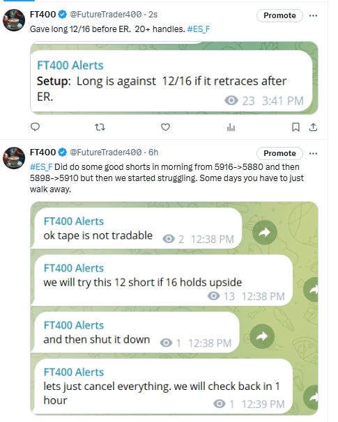 Sub stack subscription does not include real time telegram alerts it only includes this nightly news letter with levels and possible setups. For real time alerts please go to https://futuretrader400.substack.com/about