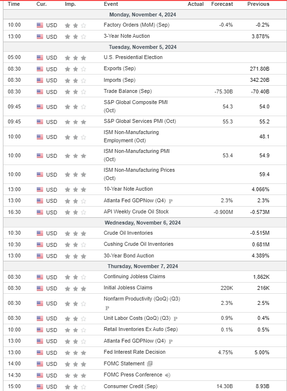 Notables are PMI, ISM on Monday, followed by electicion volatility on Wednesday, and FOMC rate decision on Thursday. So expect lot of fireworks.