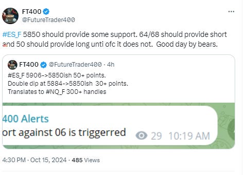 Sub stack subscription does not include real time telegram alerts it only includes this nightly news letter with levels and possible setups. For real time alerts please go to https://futuretrader400.substack.com/about