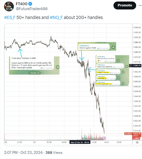 Sub stack subscription does not include real time telegram alerts it only includes this nightly news letter with levels and possible setups. For real time alerts please go to https://futuretrader400.substack.com/about