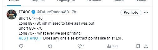 Sub stack subscription does not include real time telegram alerts it only includes this nightly news letter with levels and possible setups. For real time alerts please go to https://futuretrader400.substack.com/about