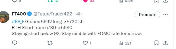 Sub stack subscription does not include real time telegram alerts it only includes this nightly news letter with levels and possible setups. For real time alerts please go to https://futuretrader400.substack.com/about