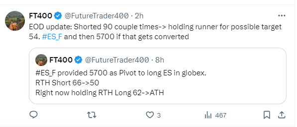 Hello Traders, Bulls pushed ES by almost 100 points from our Globex Pivot 5700. ATH can continue to print until it won’t. That’s why we dont pick bottom’s or tops as bottoms can keep getting deeper and tops can keep getting toppier. Occassionally you can try those trades with proper risk management but don’t fight and don’t DCA.