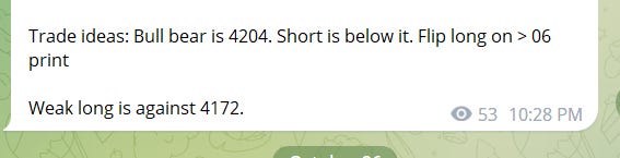 Sub stack subscription does not include real time telegram alerts it only includes this nightly news letter with levels and possible setups. For real time alerts please go to https://futuretrader400.substack.com/about