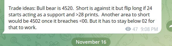 Sub stack subscription does not include real time telegram alerts it only includes this nightly news letter with levels and possible setups. For real time alerts please go to https://futuretrader400.substack.com/about