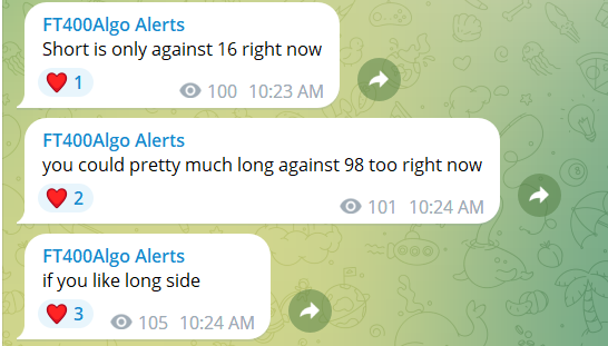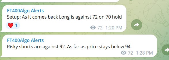 Sub stack subscription does not include real time telegram alerts it only includes this nightly news letter with levels and possible setups. For real time alerts please go to https://futuretrader400.substack.com/about