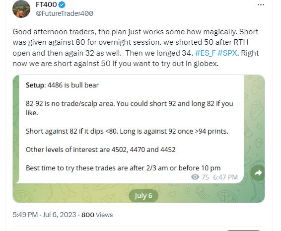 Sub stack subscription does not include real time telegram alerts it only includes this nightly news letter with levels and possible setups. For real time alerts please go to https://futuretrader400.substack.com/about