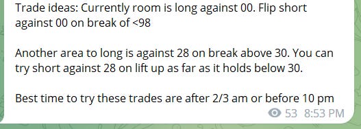 Sub stack subscription does not include real time telegram alerts it only includes this nightly news letter with levels and possible setups. For real time alerts please go to https://futuretrader400.substack.com/about