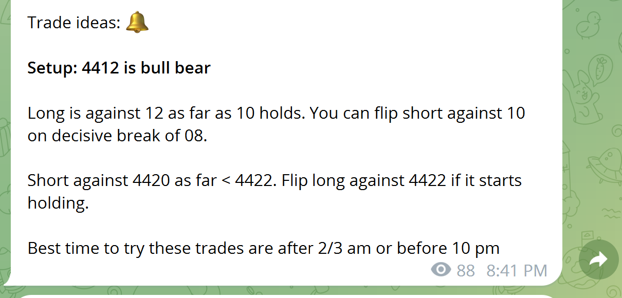 Sub stack subscription does not include real time telegram alerts it only includes this nightly news letter with levels and possible setups. For real time alerts please go to https://futuretrader400.substack.com/about
