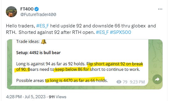 Sub stack subscription does not include real time telegram alerts it only includes this nightly news letter with levels and possible setups. For real time alerts please go to https://futuretrader400.substack.com/about