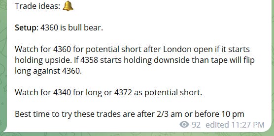 Sub stack subscription does not include real time telegram alerts it only includes this nightly news letter with levels and possible setups. For real time alerts please go to https://futuretrader400.substack.com/about