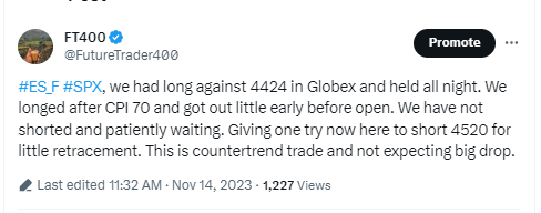 24 acted launch pad after CPI for 100 ish points. We missed most as we do not take position before news. But we captured some points by longing 4474 after CPI and then shorted 20 in afternoon.