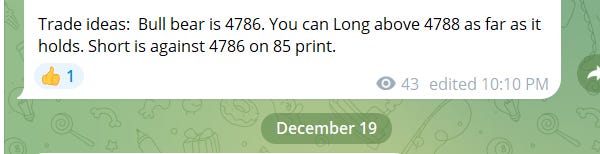 Sub stack subscription does not include real time telegram alerts it only includes this nightly news letter with levels and possible setups. For real time alerts please go to https://futuretrader400.substack.com/about