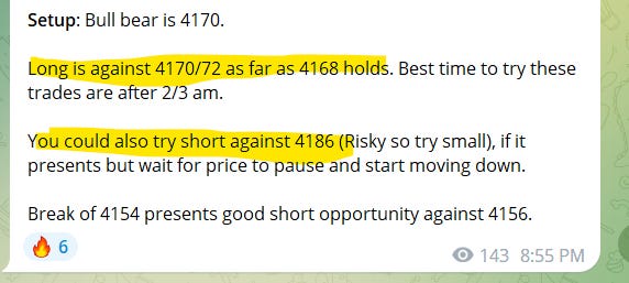 Sub stack subscription does not include real time telegram alerts it only includes this nightly news letter with levels and possible setups. For real time alerts please go to https://futuretrader400.substack.com/about